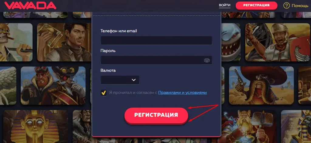 - Внести деньги на Vavada любым доступным способом.